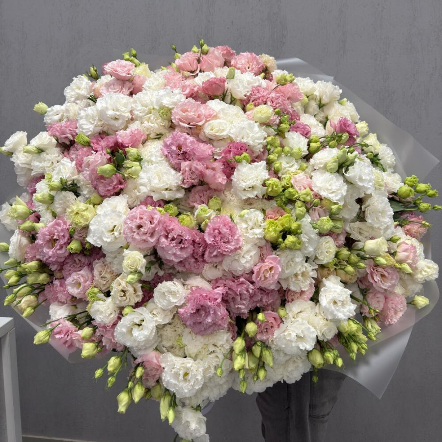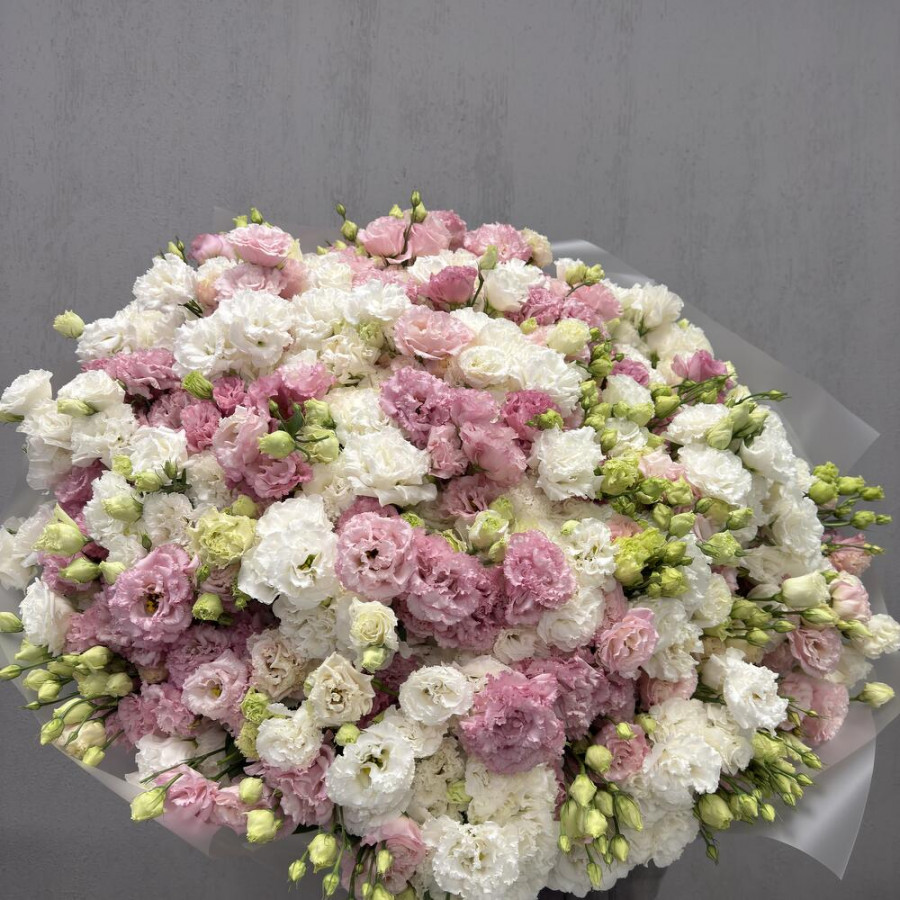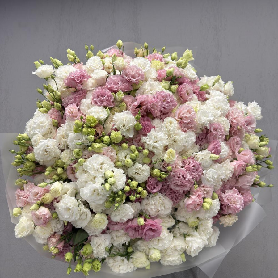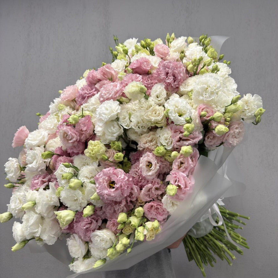 Букет из 101 эустомы розового и белого цвета