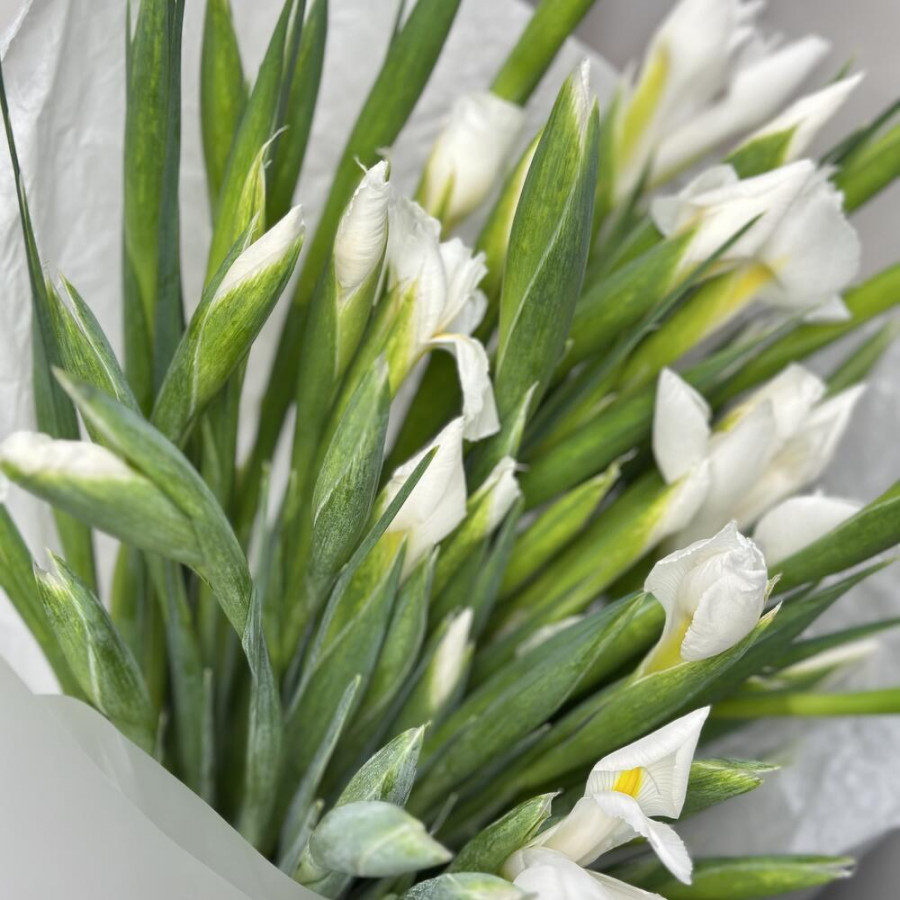 Нежный букет из 49 белых ирисов фото 4