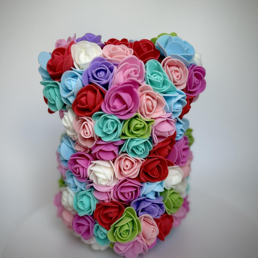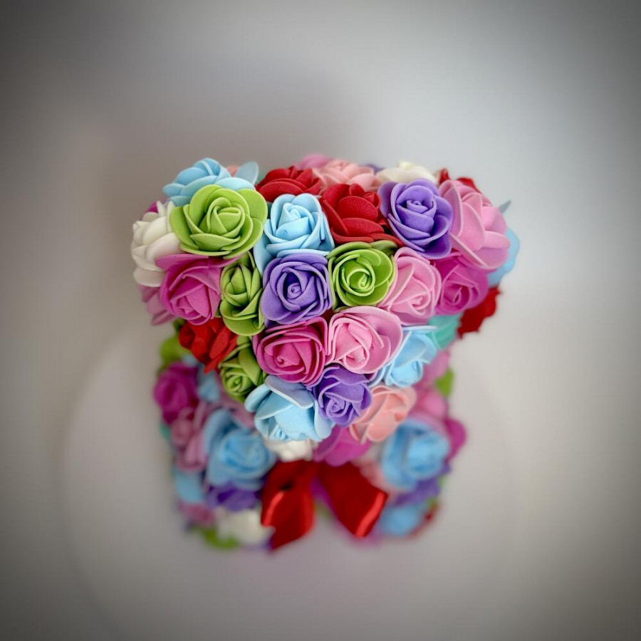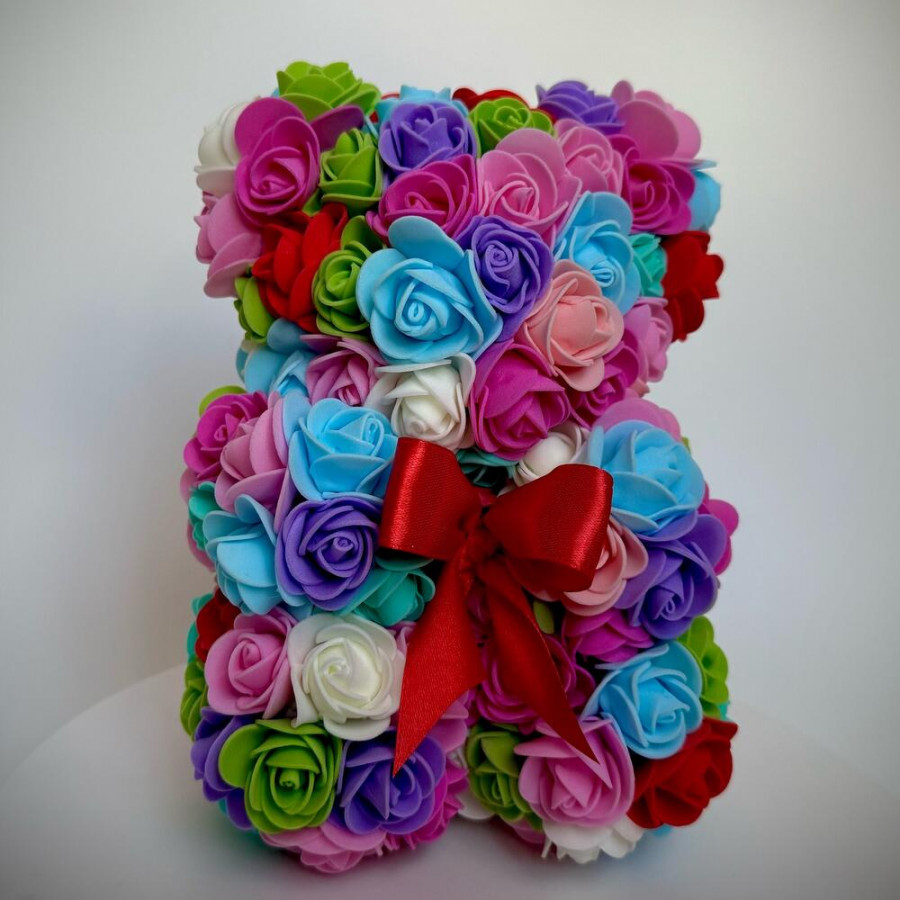 Rose Bear «Luxury» — медвежонок из более 100 фоамирановых роз, высота 25 см. Не вянет, не требует ухода, гипоаллергенен, устойчив к влаге. В комплекте подарочная коробка и открытка. Идеален для Дня рождения, 8 Марта, годовщины, признания в любви.